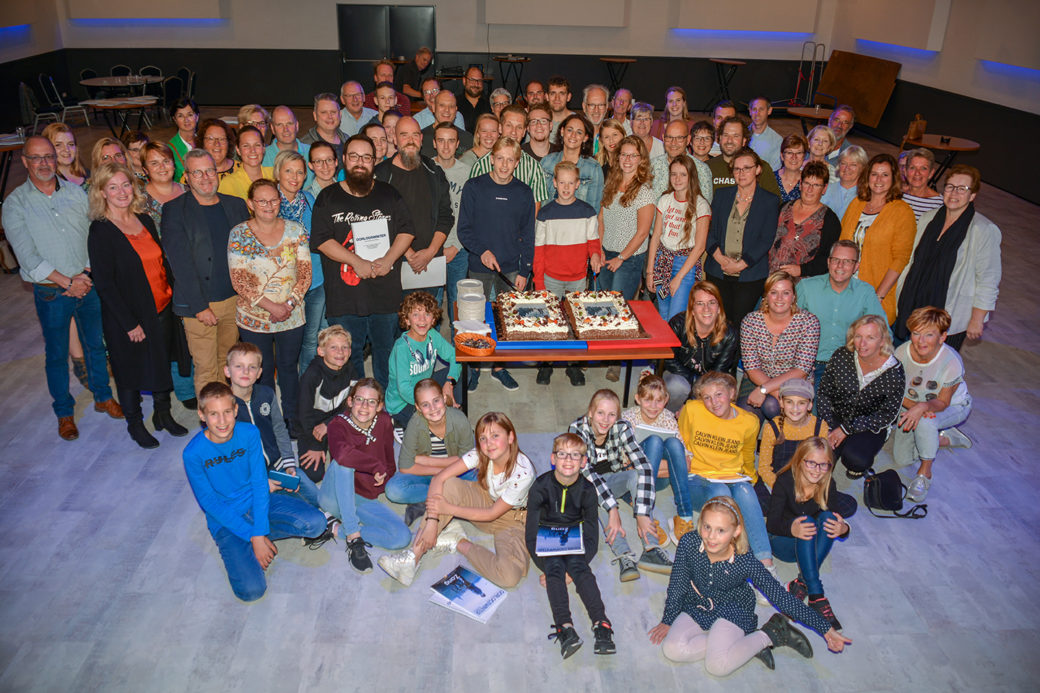 Jan Willem nam vervolgens iedereen mee door het verhaal van Oorlogswinter de musical, waarna alle deelnemers persoonlijk werden voorgesteld. Na het fotomoment konden eindelijk de twee enorme taarten (met dank aan Warme Bakker Jac Smit) worden aangesneden. Onder het genot van het heerlijke gebak en koffie of thee (aangeboden door De Parel) werd flink bijgekletst.